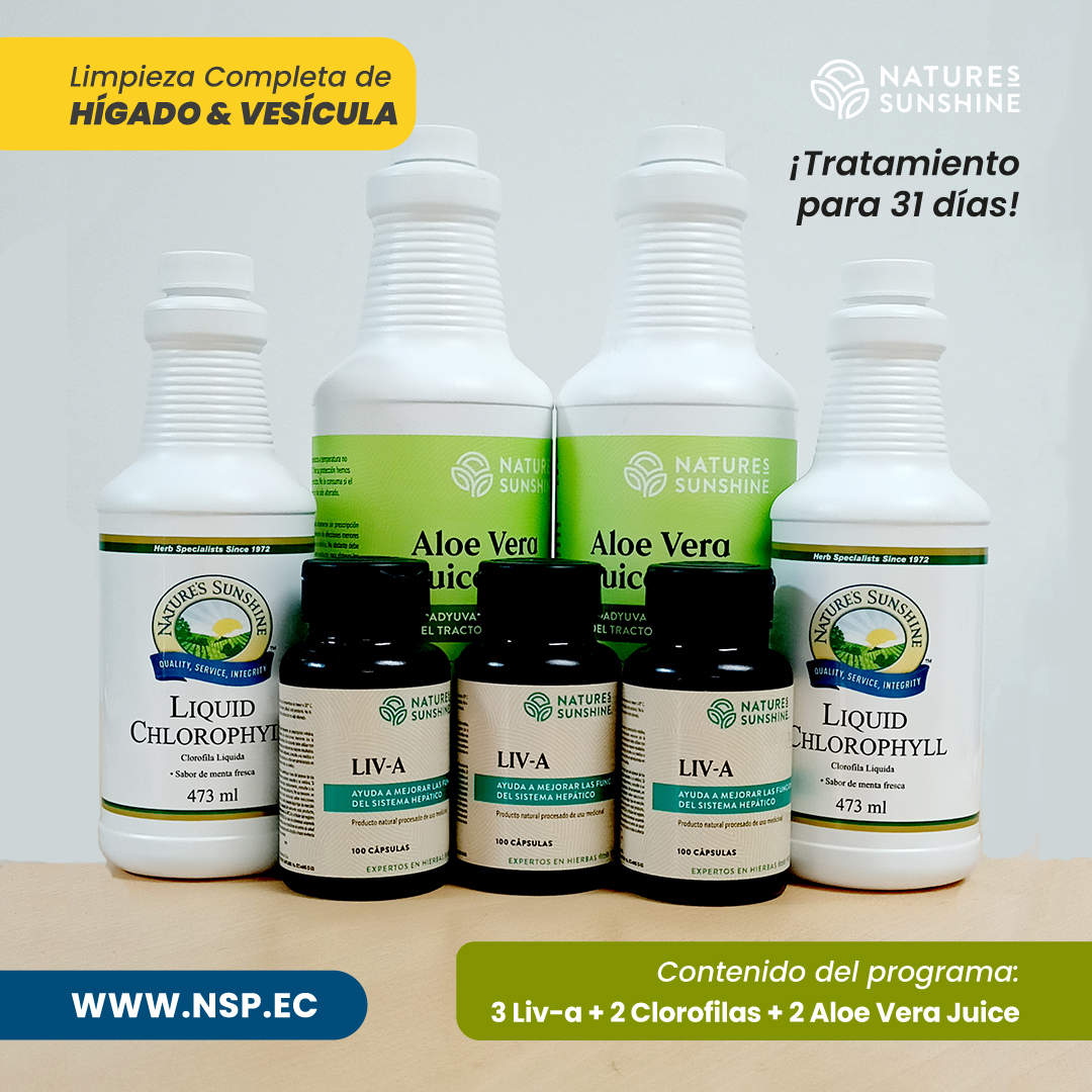 Natures Sunshine ofrece un tratamiento 100% efectivo para lograr una completa limpieza y desintoxicación de hígado y vesíscula, es un tratamiento para 31 días y se lo debe tomar siguiendo una tabla escalonada la cuál se detalla al final de ésta página.